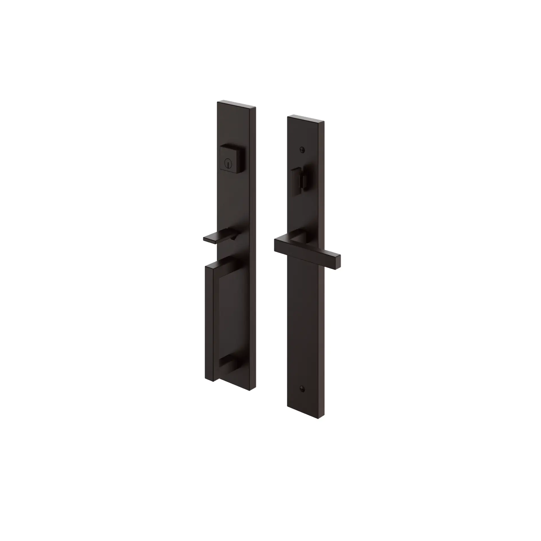 The Berlin Gripset Handle offers a combination of style and functionality, crafted from solid forged brass for durability and equipped with a US-cylinder featuring a standard Schlage “C” keyway. Designed for ease of use, it includes a new snapping mechanism for 90-degree locking with a thumb-turn and an improved spring-load mechanism for the interior lever handle. The handle is non-handed and easy to install, featuring a weatherproof gasket and a stainless steel set screw on the interior lever for added security.